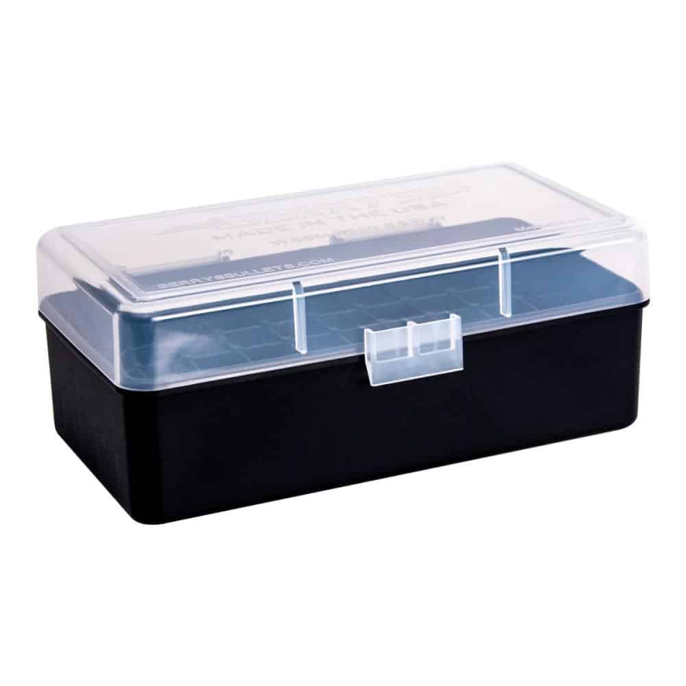Sve Berryjeve kutije za streljivo izrađene su od polipropilena visoke otpornosti na udarce radi povećane čvrstoće protiv pucanja, kidanja, savijanja, širenja ili skupljanja. Naše kutije Model #005 sa 100 okruglih kuglica imaju novi, jači dizajn s preklopnim poklopcem, što omogućuje sigurno skladištenje streljiva jednostavnim rukovanjem jednom rukom. Uz prozirni poklopac, sada dolaze s crnom bazom za povećanu čvrstoću i čist izgled. Mogu se slagati jedna na drugu, imaju doživotno jamstvo i proizvedene su u SAD-u.